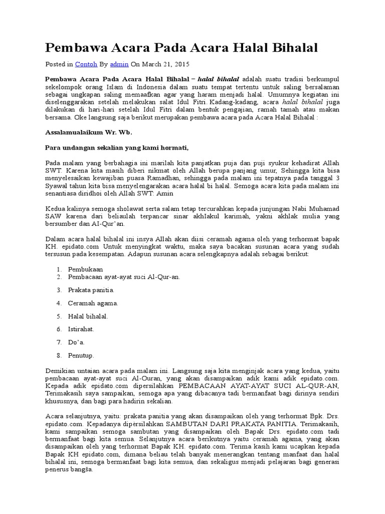 Puji dan syukur marilah kita panjatkan kehadirat allah swt, karena di hari raya idul fitri ini kita masih diberi kesehatan dan kekuatan iman dan islam untuk. Dibawah ini adalah contoh teks protokol yang bisa digunakan sebagai sambutan bagi mc idul fitri. Contoh teks mc pembawa acara sholat idul adha muqoddimah. Pihak dkm atau panitia shalat idul fitri ataupun idul adha biasanya membuat dan memasang spanduk yang berisi ajakan sekaligus informasi waktu, tempat, dan. Sebagai contoh, surah al baqarah (2):227.
