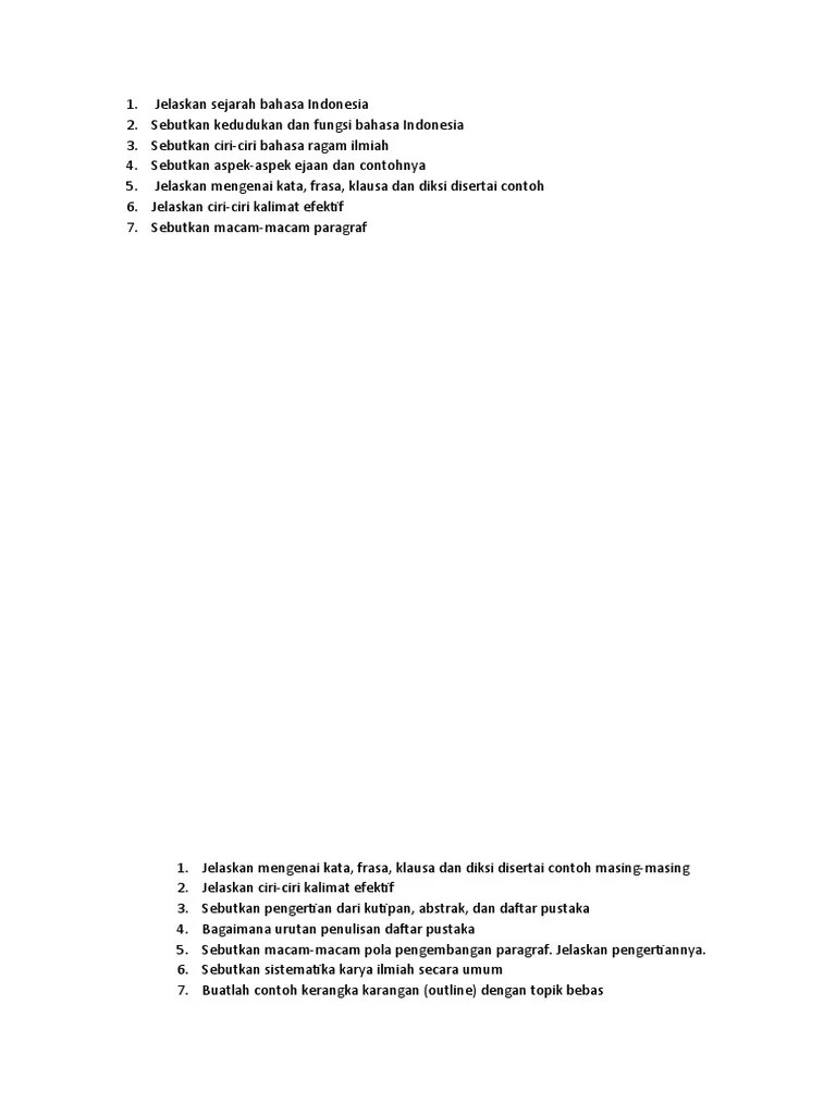 Ciri kebahasaan karya ilmiah · pemilihan kata dan istilah harus tepat · menggunakan kalimat efektif · penataan paragraf yang baikpenalaran yang . Ciri karakteristik karya tulis ilmiah · reproduktif · tidak ambigu · tidak emotif · menggunakan bahasa baku · menggunakan kaidah keilmuan · bersifat . Penulisannya harus cermat, tepat, dan benar. Menyajikan fakta secara objektif b. Saya akan jelaskan singkat saja tanpa contoh, dan kamu bisa membuat karya ilmiah sendiri dengan mengikuti sistematika penyusunannya.