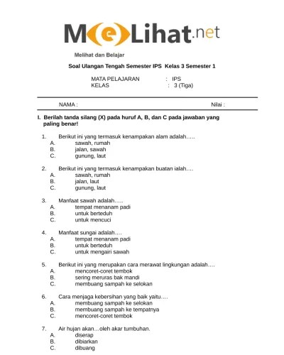 Soal latihan ulangan ips sd semester 1 kelas 3.